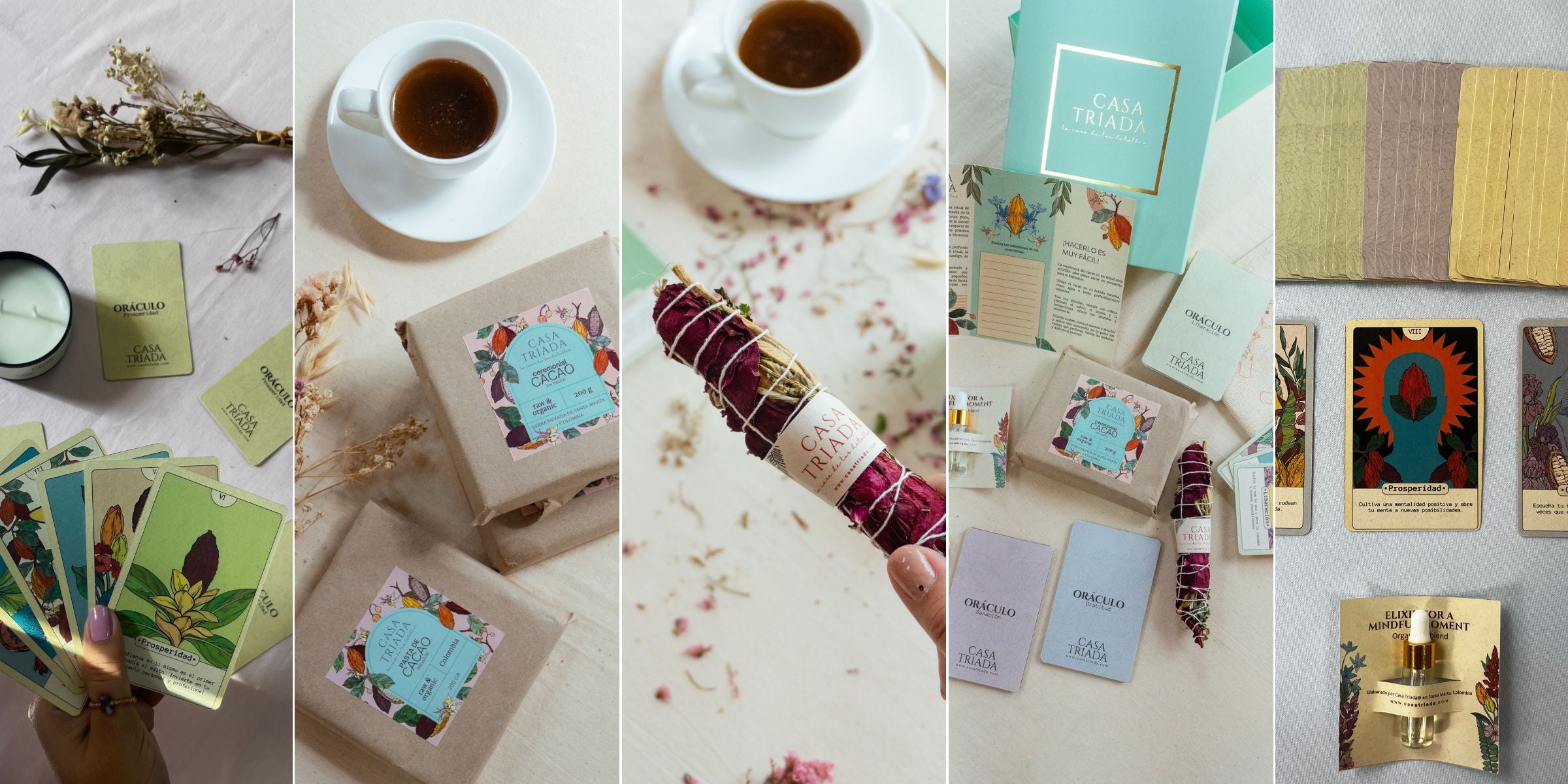 Cada presentación de cacao tiene su magia y beneficios únicos. En Casa Triada, seleccionamos el cacao en su estado más puro. Encuentra diferentes presentaciones orgánicas, cultivado y procesado por comunidades de la Sierra Nevada de Santa Marta y más regiones productoras de Colombia. Disfruta los beneficios del cacao de la forma que mejor se adapte a tu ritual de bienestar.